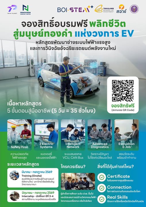จองสิทธิ์อบรมฟรี!!! โอกาสทองของคนอยากเติบโตในสาย EV